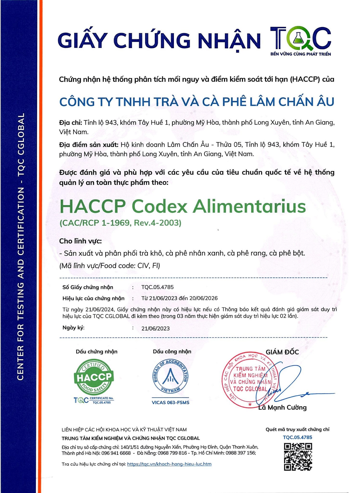 Công Ty TNHH Trà Và Cà Phê Lâm Chấn Âu