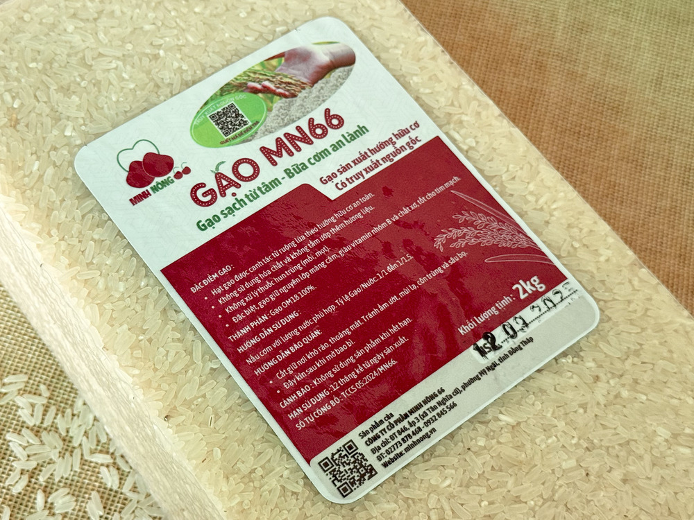 Gạo MN66 với thành phần 100 Gạo hữu cơ được canh tác tự nhiên từ giống lúa OM18 chăm sóc bằng phân hữu cơ đạm cá sạch giữ nguyên lớp cám gạo dinh dưỡng