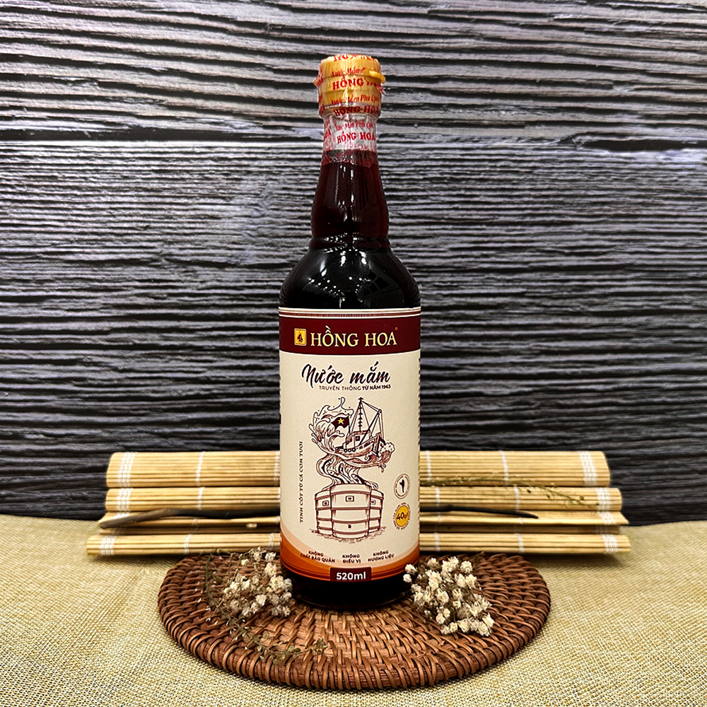Nước Mắm Nhĩ Cá Cơm Truyền Thống Phú Quốc Hồng Hoa 40 Độ Đạm - Chai Thủy Tinh 520ml